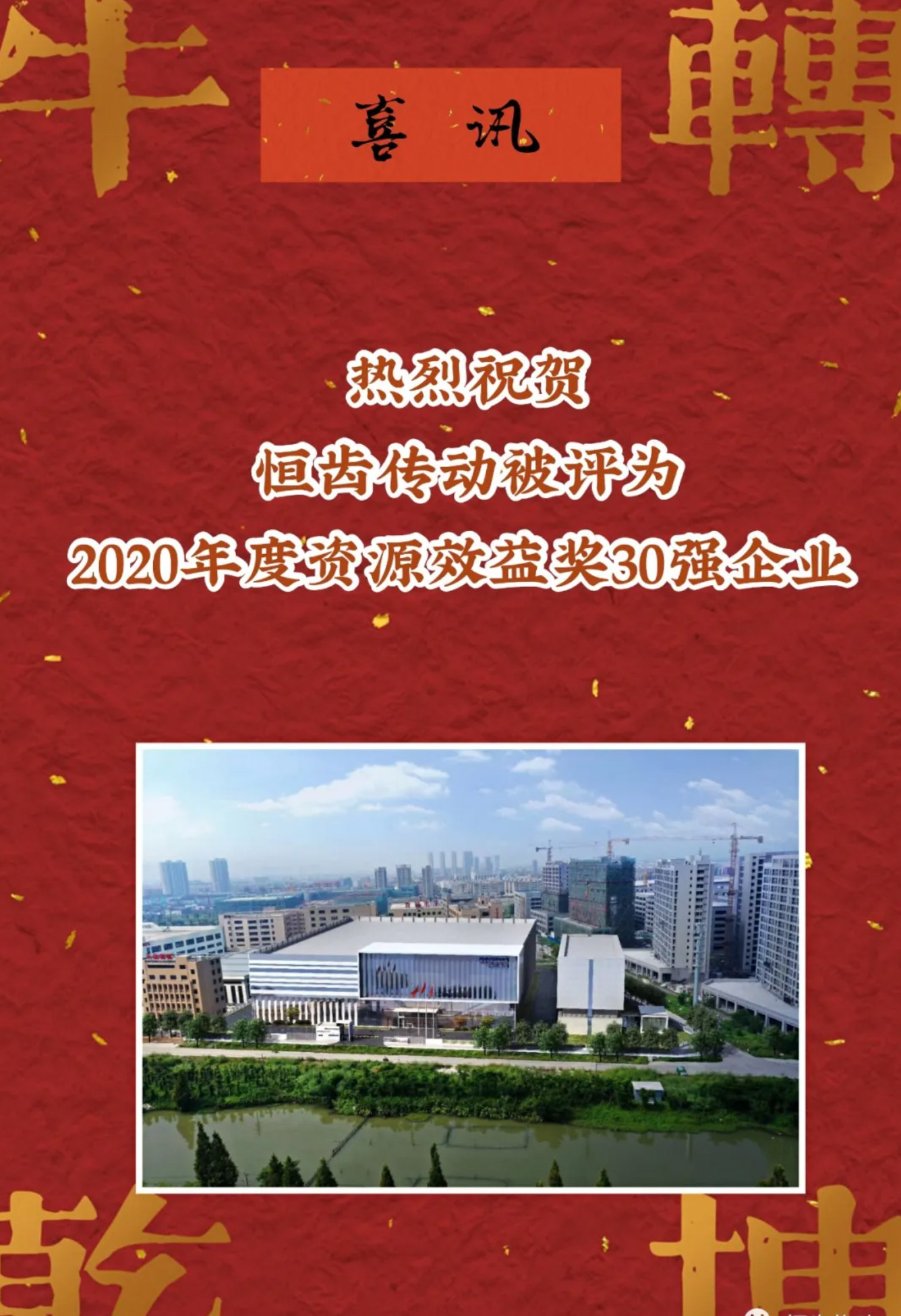 喜訊|熱烈祝賀恒齒傳動連續三年被評為資源效益獎30強